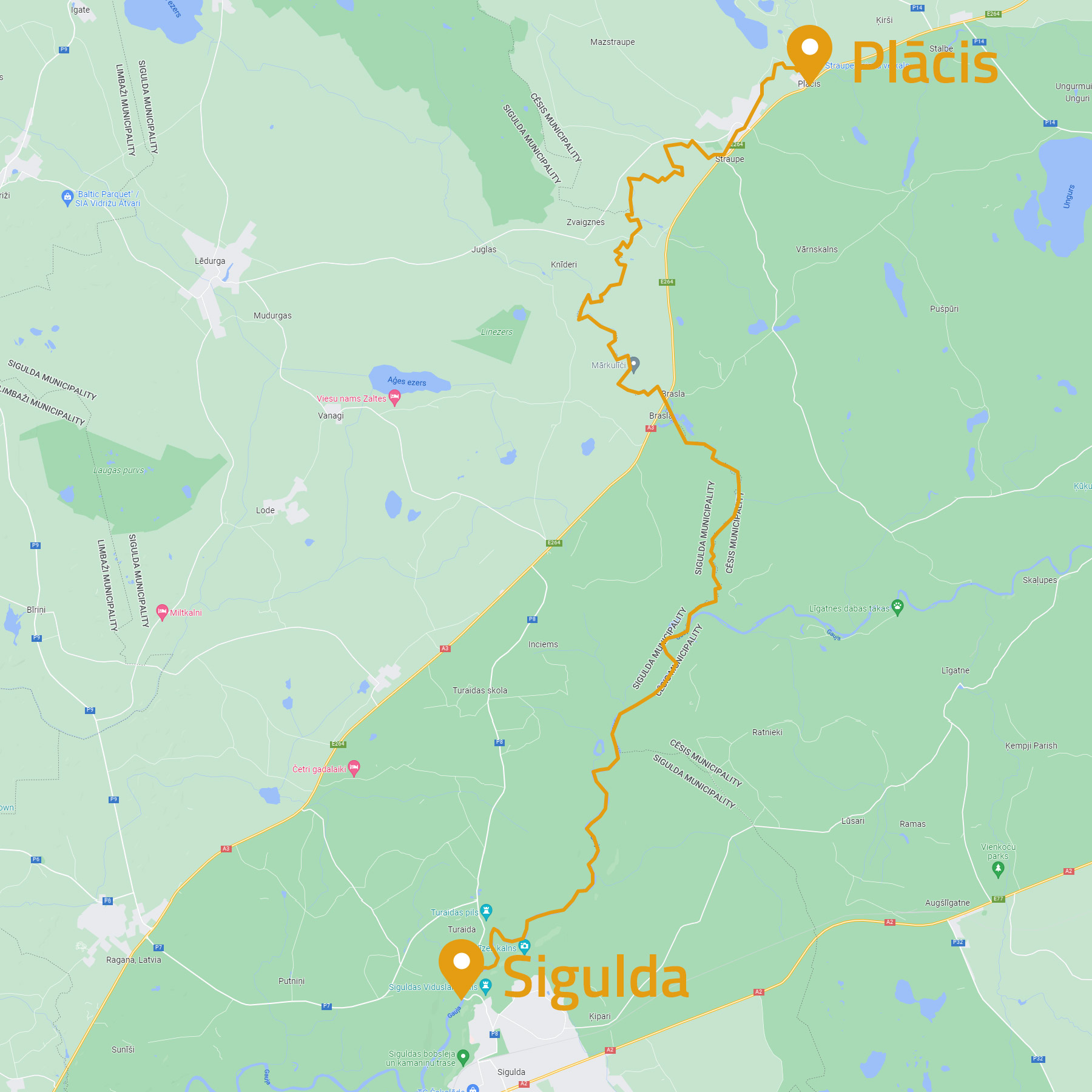 | Plācis - Sigulda | 41 | 2 dienas | 75 EUR* / 60 EUR** |
